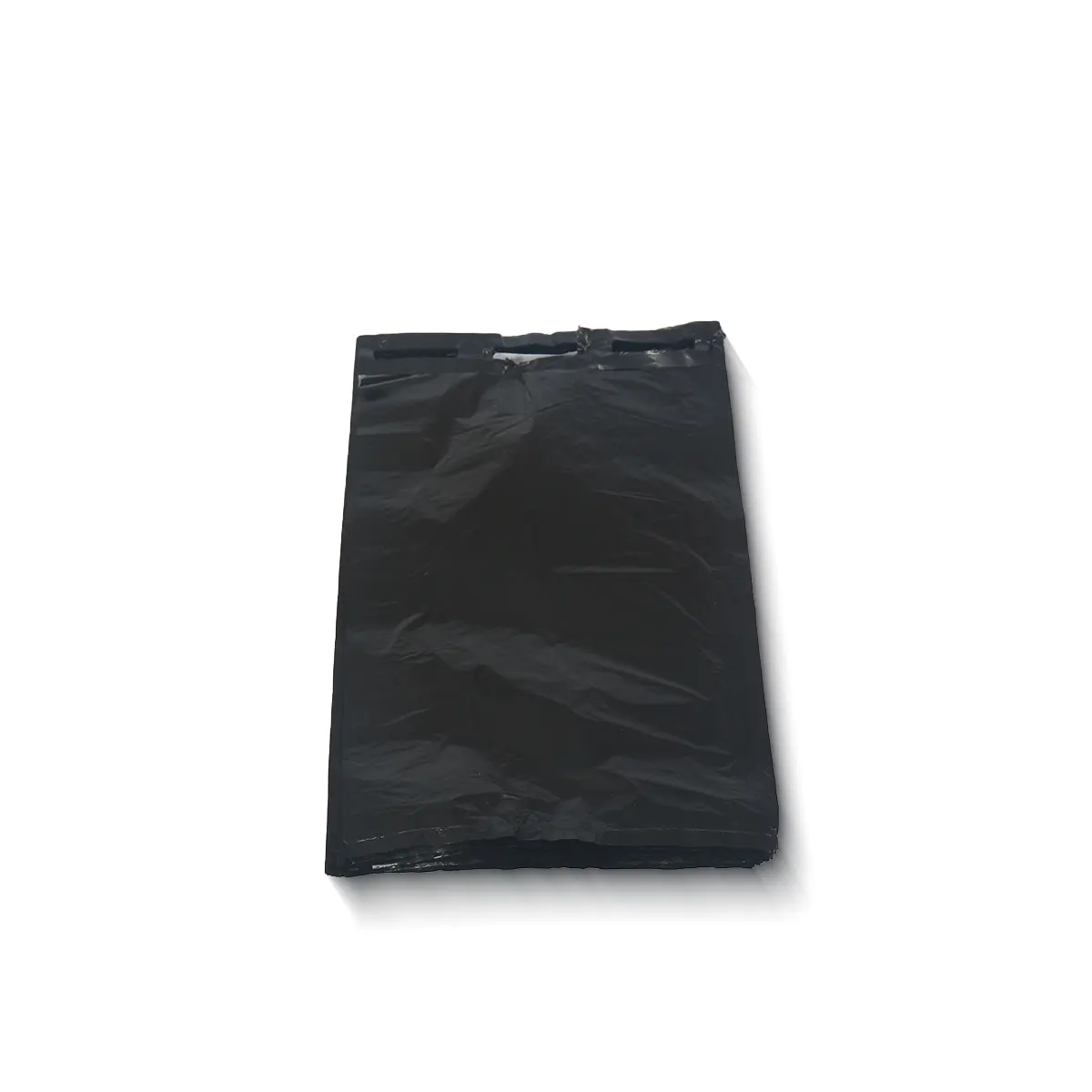 Schwarze Hundekotbeutel aus Recycling-HDPE im Format 21 x 31 cm. Materialstärke 13 µm, geblockt zu 100 Stück mit 3-fach Universallochung. VE: 3.000 Stück.