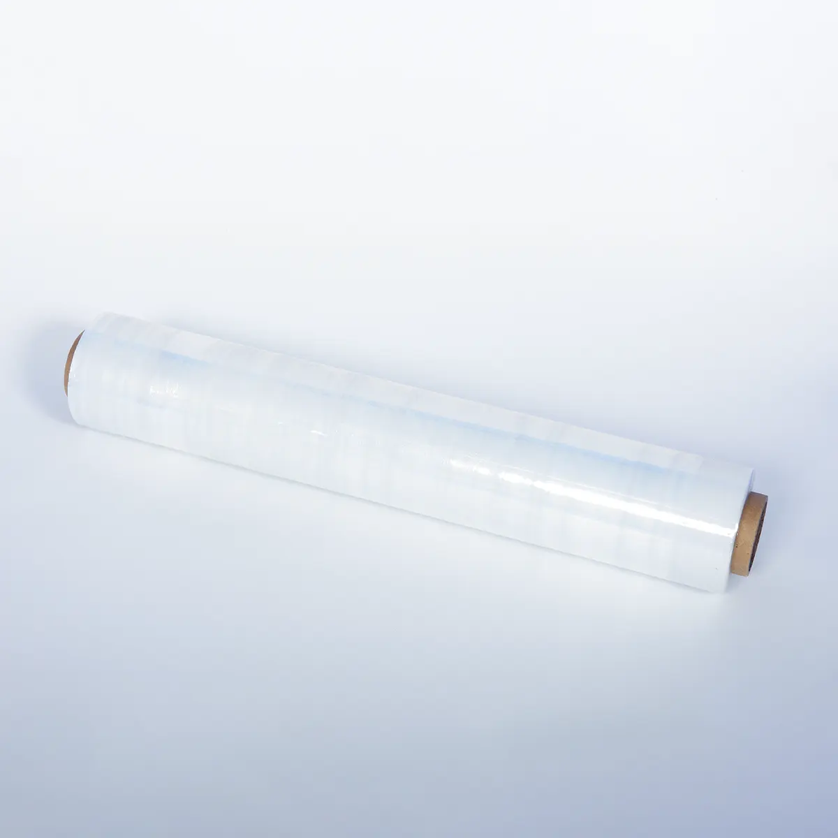 Eine Handstretchfolie 45 cm in Typ 17 STANDARD (ca. 17 µm) aus LLDPE Cast-Folie ist eine transparente Palettenfolie zur manuellen Ladungssicherung in Industrie, Lager und Versand.